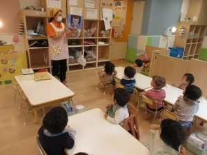 2022.05.11|お知らせ・イベント ?絵本読み聞かせプログラム? みなさん こんにちは(^^)/ 認可保育園 サンライズキッズ保育園 市川園です? お給食の前にも絵本の読み聞かせを(^-^) どんなお話かな~と絵をじっと見ていますね?✨ 前へ 次へ