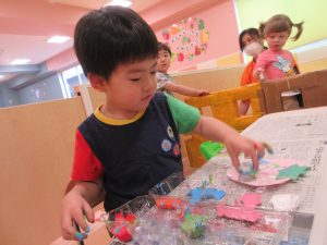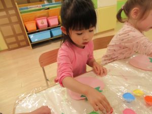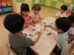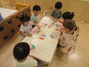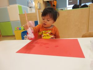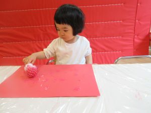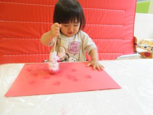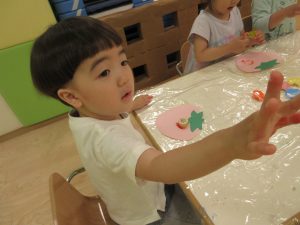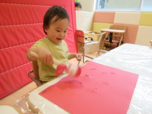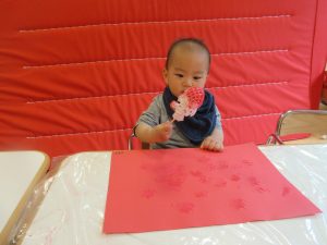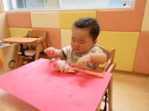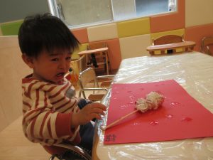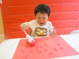 タンポを持つことも嫌だったお友だちが持ってペタペタできました(^-^)