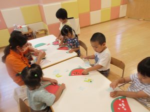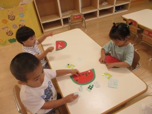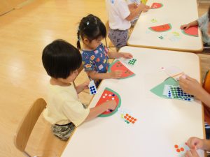 梅雨も明け毎日暑いですが、7月からは水遊びを行い、少しでも涼を感じて生活できたらなと思います