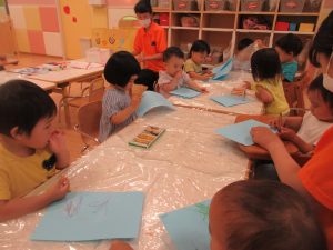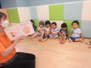 夕方、水分補給をする前にも絵本の読み聞かせ(^^)