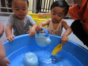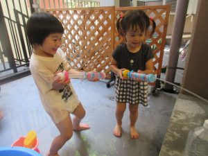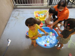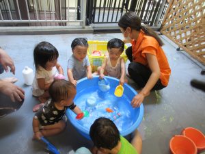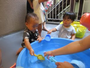 今週も水遊びができるときは水に触れて楽しんでいましたよ![]()