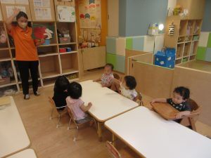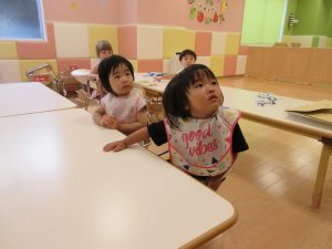 給食やおやつの前には、食事関連の紙芝居や絵本を見ています。