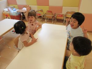 りんご組さんは、お話を見ながら、お友だち同士でお話しながら楽しんでいますよ![]()