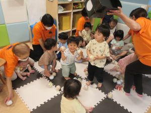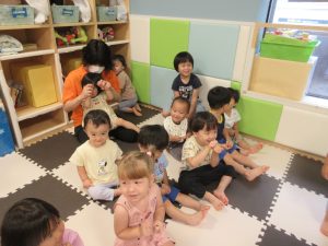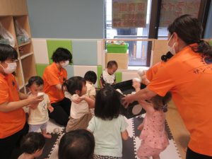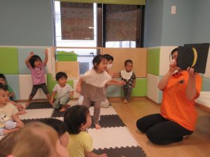 保育者の真似をしながら、楽しんで見ています(^^)/