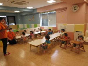 出てくる食べ物を呼ぶたびに「はーい!」と、子どもたちも一緒に手を挙げてくれました