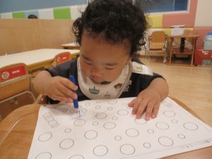 0歳児のお友だちも、お絵描きやシール貼りが出来るようになってきました(^^)