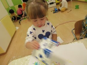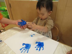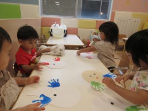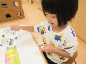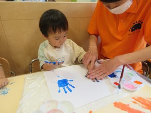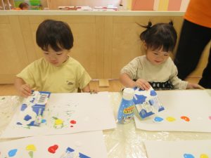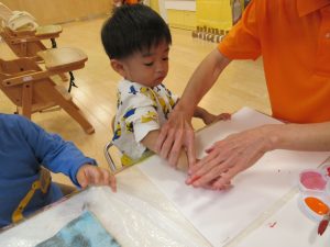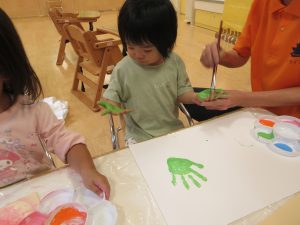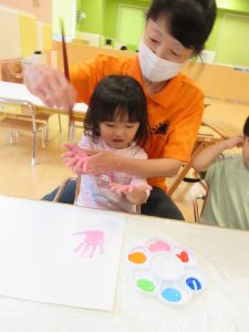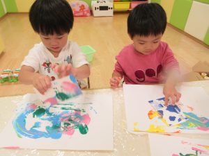 絵の具の感触が苦手な子も、取り組めていました![]()
