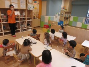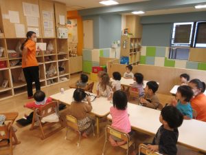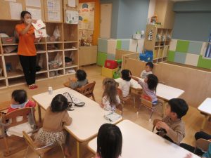 絵本の読み聞かせは、大人気【だるまさんシリーズ