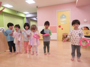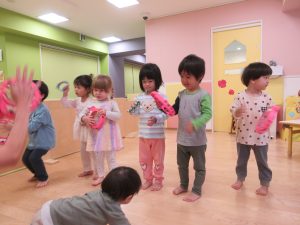 リトミックでは、歌に合わせて、手遊びを取り入れています(^^)/