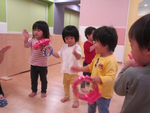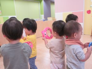 歌に合わせて楽器遊びにも挑戦