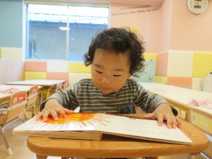 はらぺこあおむしの絵本は大人気で、0歳児のお友だちも釘付けです![]()