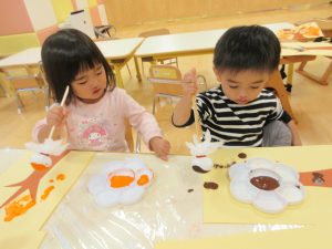 各クラス秋らしい作品ができたので、お迎えの際に見ていって下さいね![]()