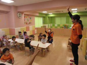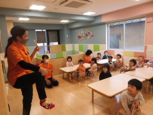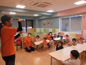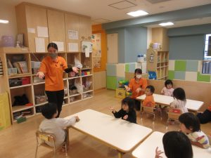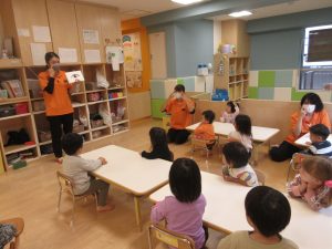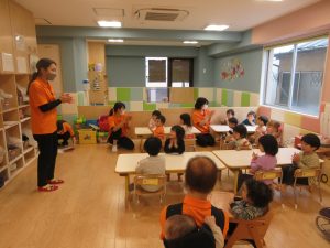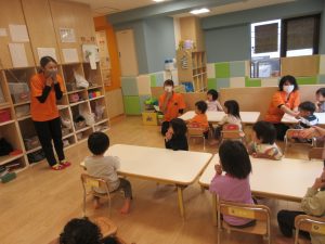 始まりと終わりの歌は、みんな覚えてきたので、保育者を見なくても出来ています![]()