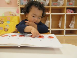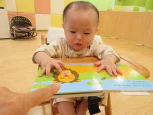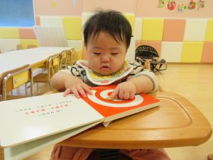 0歳児のお友だちも、絵本に興味を示してきましたよ(^^)/