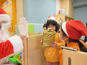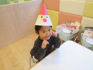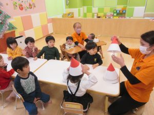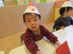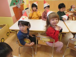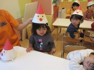 保育者手作りのサンタの帽子をプレゼント~![]()