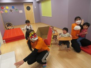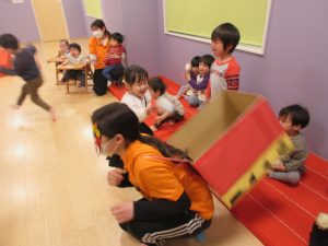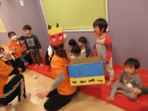 絵本を見た後は、【鬼は外~福は内~】の掛け声練習(^O^)/