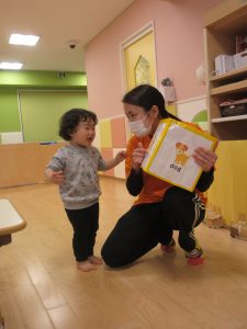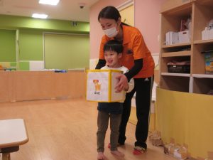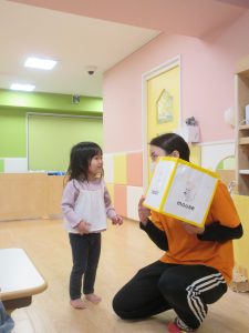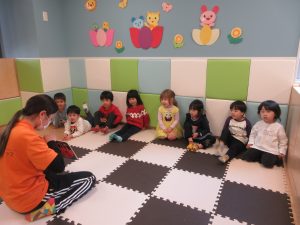 絵本が大好きな市川園のお友達は、集中して絵本を見ています