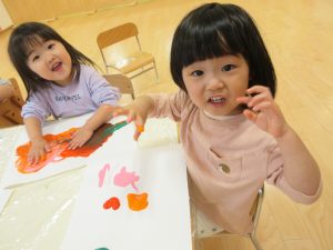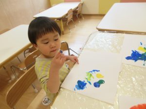 「もっとやりたい!!」と何回も絵の具を足す子の姿も‥💕