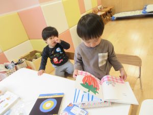 読み聞かせだけではなく、自分たちでも絵本を読んでいますよ😊✨
