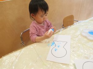 スポンジに絵の具をつけ、ポンポンと模様をつけました🥰✨