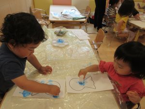【りんご組製作の様子~あじさい製作~】
