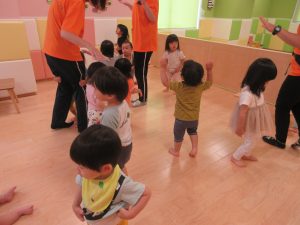次にピアノの歌に合わせながらカエルやクマなどの動物に変身をしました🐻