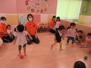 ピアノの音をよく聞き、上手に歩いたり止まったりしていました。