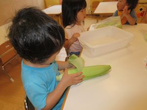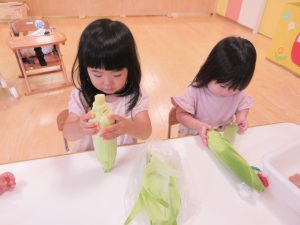 みんなで力を合わせてとうもろこしの皮が剥けました👏👏