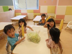 「わあ!とうもろこしだ!」と大喜びの子も・・( *´艸`)
