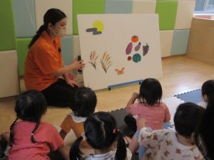 朝の会で月が出てくる絵本を読んでからもも組のお部屋に移動して十五夜会の始まりです😊