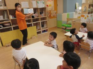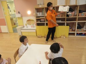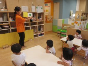 フラッシュカードでも『形』を行いましたが、絵本を見ながらも形を覚えていく子どもたち(^O^)/