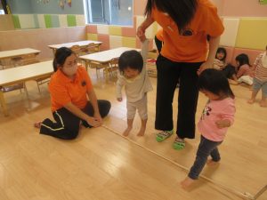 「ワニに食べられる~」と女の子たちは必死にジャンプをしていました(^^♪