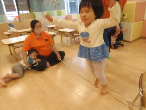 ロープをジャンプ!!りんご組さんは一人で大きくジャンプ出来ますよ✨