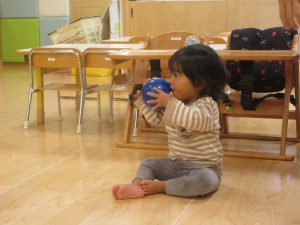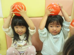 もも組のお友達も保育者を見ながらボールを動かす姿に癒されますね💕