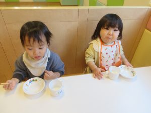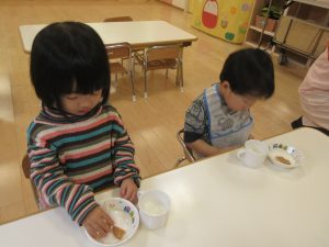 1月からはりんご組さんの卒園、いちご組さん、もも組さんの進級があるので、おやつや給食の席をクラス関係なしにバラバラにしてみようと思います!(^^)!