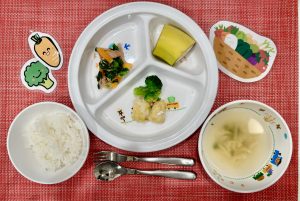 サンライズキッズ保育園 ◎給食の様子 今日はいつもの献立とは少し違い、さといもが入った...
