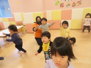 最後は子どもたちが大好きな『しゅりけんにんじゃ』と2月から『モリモリマッチョ』を踊っているので、是非お家でもやってみて下さい(^O^)/