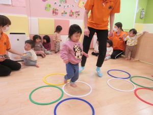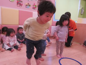 フープを潜ったり、ジャンプしたりと身体を動かしています🌞