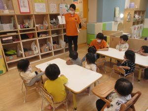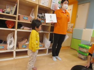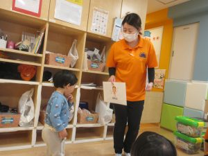 「jump」「stand up」と言いながら動いてみる子どもの姿もありました👍