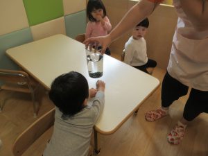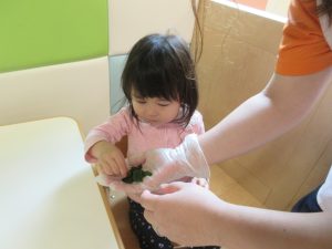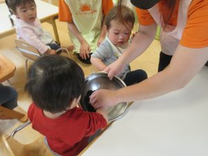 給食の味噌汁にわかめが出ると、「わかめは水に入れると大きくなるんだよね」と食育をしっかりと覚えている子も!!