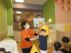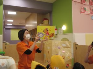紙芝居 『地震のときはどうするの』を読み、改めて地震が来たらどうするのかを子どもたちと確認をしていきました。
