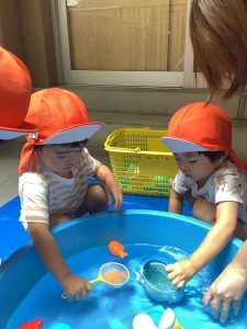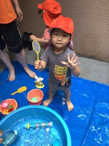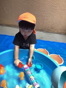 りんご組は去年もやっていて慣れたように、一人で水鉄砲をやったり、魚釣りをしたり👍