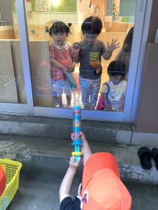 朝登園してからすぐにベランダを見て「今日水遊びやる?」と毎日楽しみにしている子どもたち😊