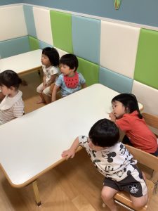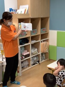 もも組のお友達も真剣に絵本を見ていますが、写真を撮っているのを気付かれました💦