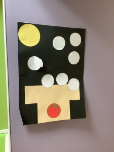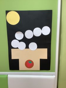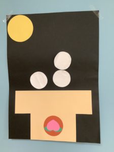 まず初めにお部屋でスケッチブックシアターを見ながら十五夜とは何かのお話を聞きました。