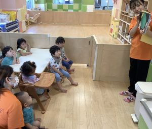 子ども達はスケッチブックシアターが大好きなのでとても真剣に見ていましたよ!