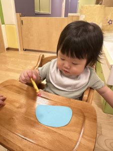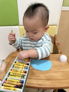 初めてのクレヨンに触れてみたり、