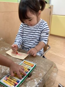 クレヨンを使ったりといちご組になると保育者の手伝いなしで自分達で製作が出来る様になってきますね✨