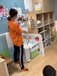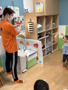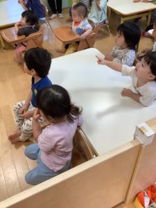 絵本を見ながら「いたよ!」「先生見て!ここここ!!」と教えてくれる子供たちです😊