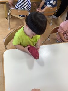 実際にさつまいもに触っていくと興味津々の子供たち!